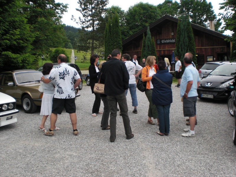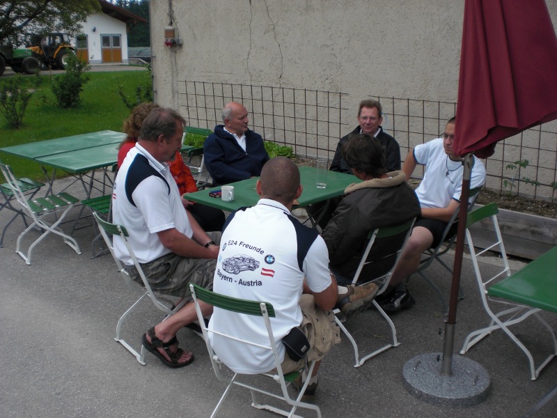 Dieses mal waren es mehr 6er, als letztes Jahr wo es saukalt war und regnete. Am. 12. Juni paßte es, zumindestens am Anfang. 13, 6er fanden sich am frühen Vormittag zum Weißwurstessen beim Oswald in Eberfing (Starnberger See) ein. Nachmittags ging es dann über schmalste Straßen zu einem Bauernhof-Cafe. Anschließend fuhren wir zu einer schönen abgelegenen Gaststätte, wo man zu Abend aß und noch so den ein oder anderen Plausch abhielt. Pünktlich zum Ende begann es zu Regnen und anschließend zu Hageln. Wie soll es auch anders sein!!! Es gab aber keine Schäden an unseren 6ern.