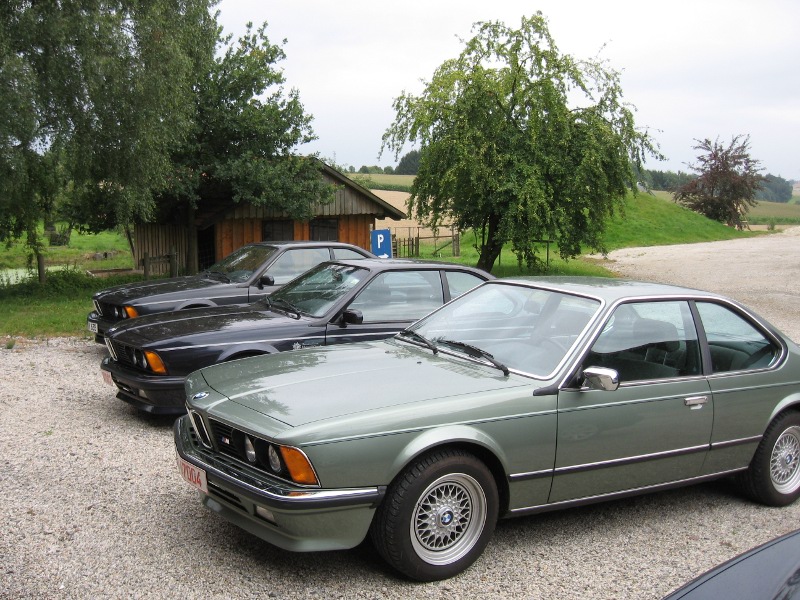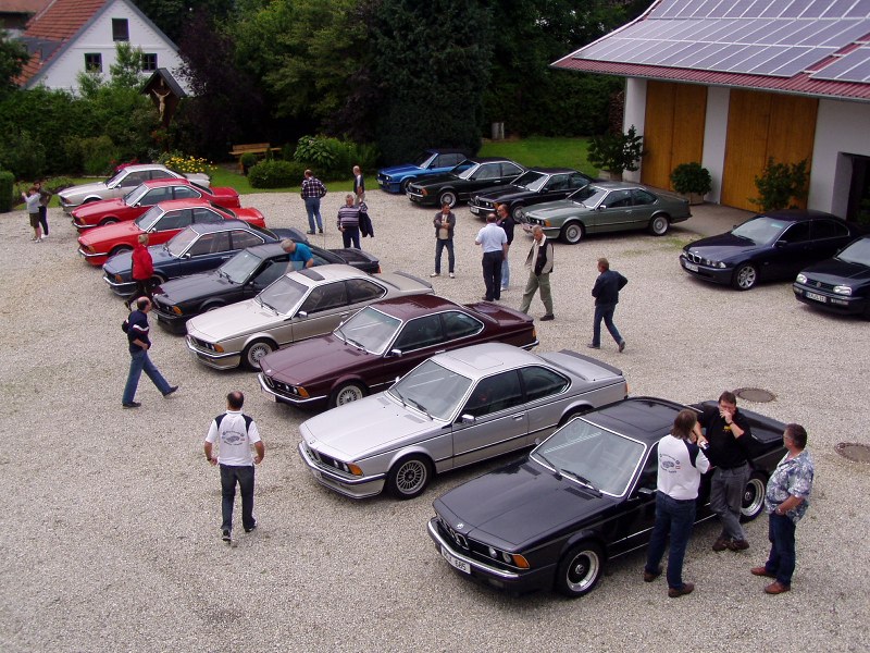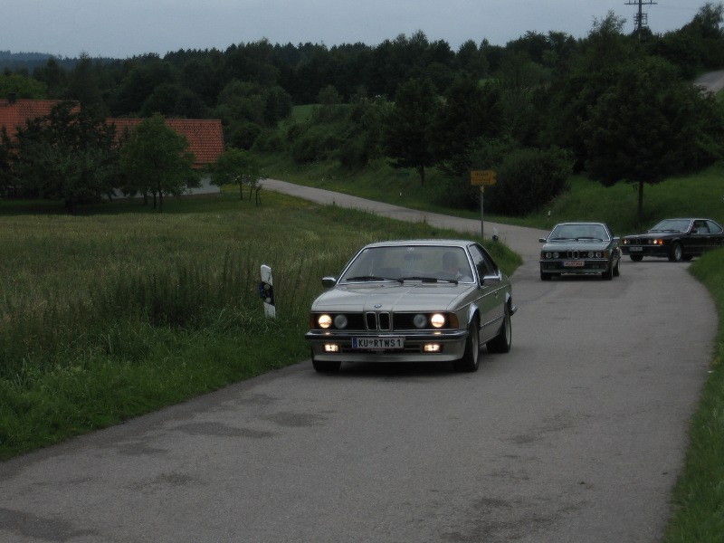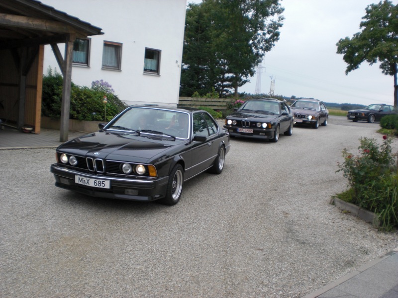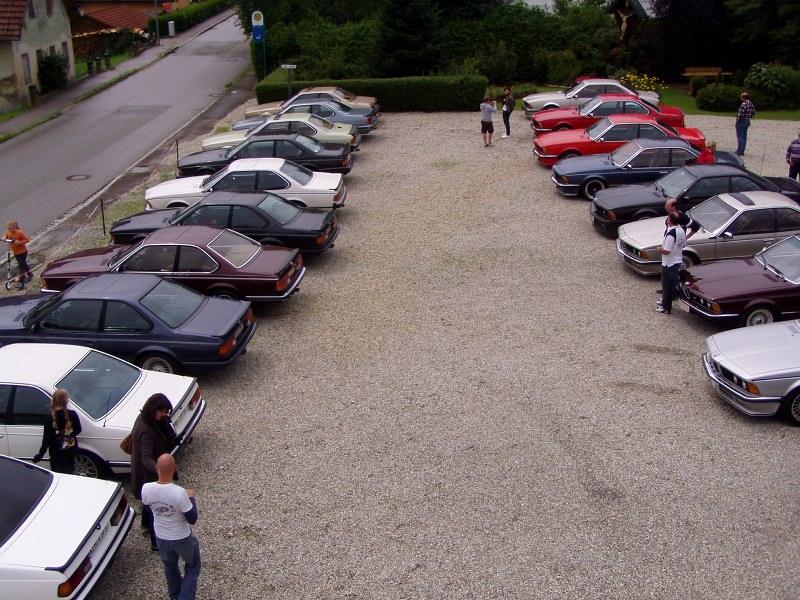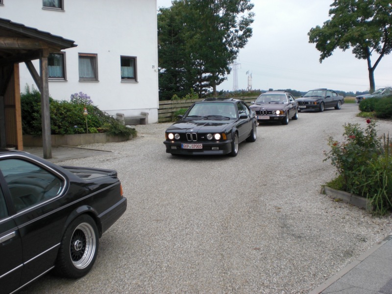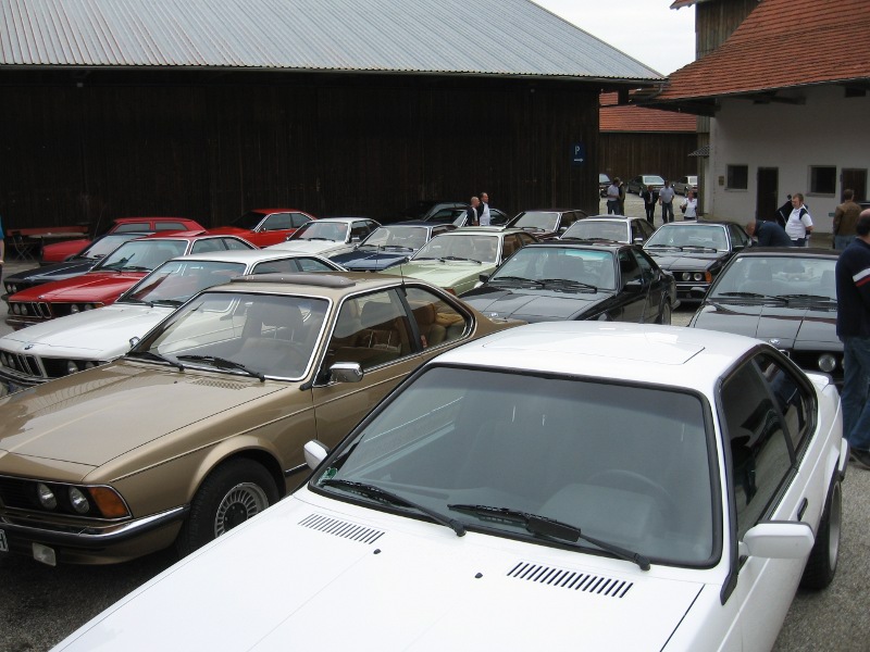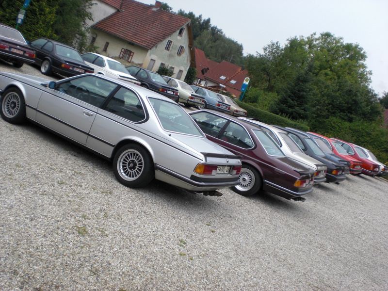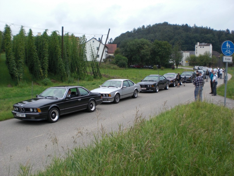 Bereits am Freitag trafen die ersten 6er Fahrer bei mir zuhause ein. Vor allem unsere österreichischen Freunde waren hier in der Überzahl. Steiermark, Hallein und Salzburger Land waren vertreten. Auch aus der näheren Umgebung waren einige da. Bei einem gemütlichem Grillabend, der bis gut nach Mitternacht dauerte ging der erste Tag zu Ende. Am nächsten Tag traf man sich dann ab 10 Uhr beim „Gasthaus Wittmann“ in Tegrnbach, wo es dann um 12 Uhr Weißwürst und Brezn gab. Bis 13 Uhr kamen dann doch 26 Fahrzeuge der E24 Reihe zusammen. Mit dabei auch 2 E30 Cabrios. Nach einer einstündigen Ausfahrt auf Nebenstraßen durch das schöne Hallertauer Hopfenland, machten wir Zwischenstopp beim Bauernhofkaffee Westermeier in Reichertshausen. Dort gab es hausgemachtes Schmalzgebäck und leckere Kuchen und Torten. Danach steuerten wir wie jedes Jahr den Biergarten Rockermeier in Unterpinhart an, wo wir den Tag gemütlich ausklingen ließen. Das Wetter war so ziemlich auf unserer Seite, nur am Samstag morgen gab es einen leichten Nieselregen.