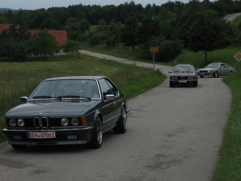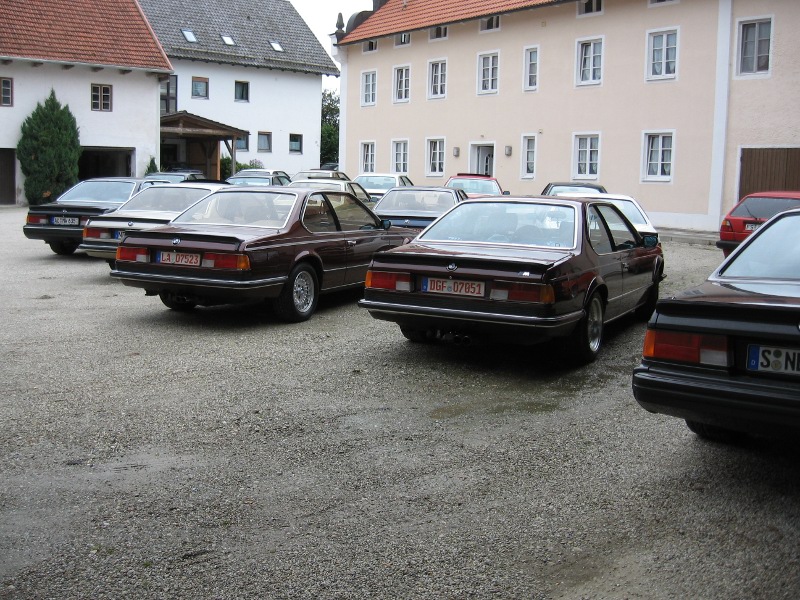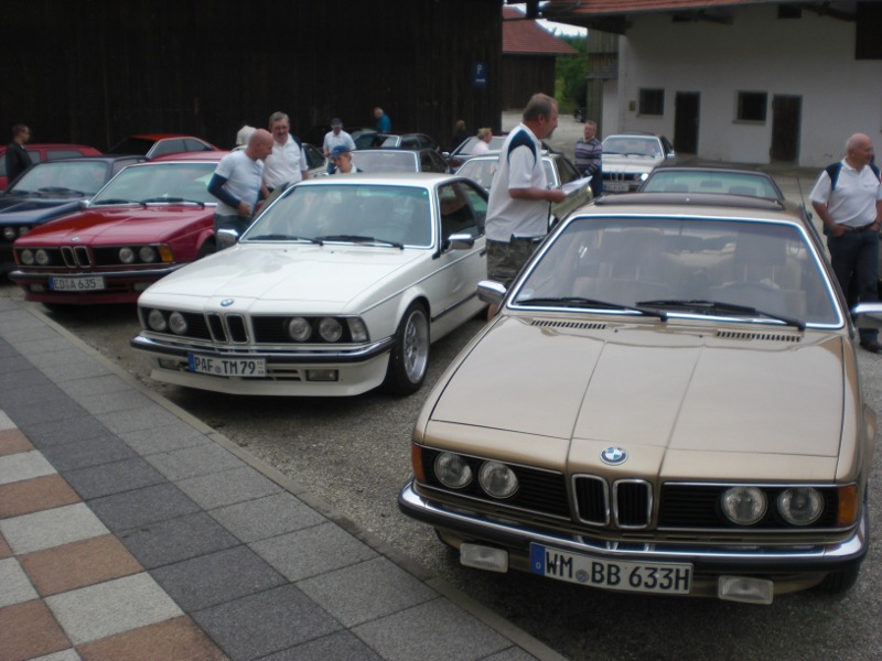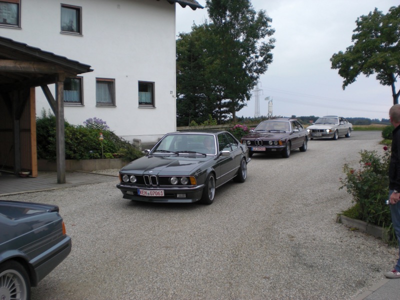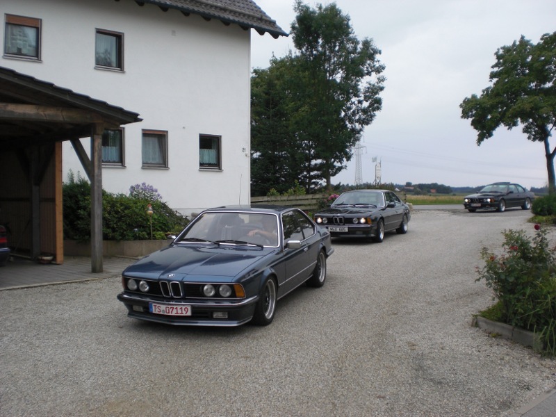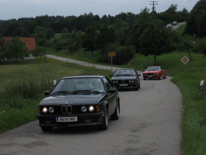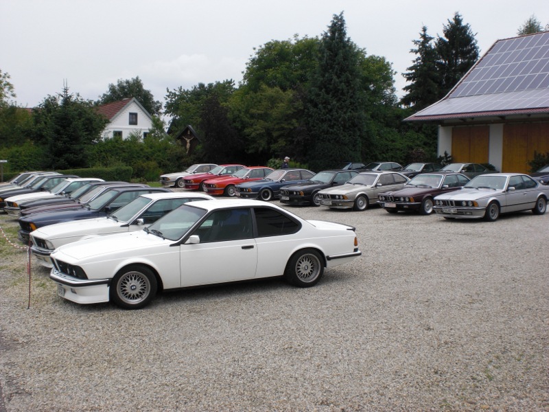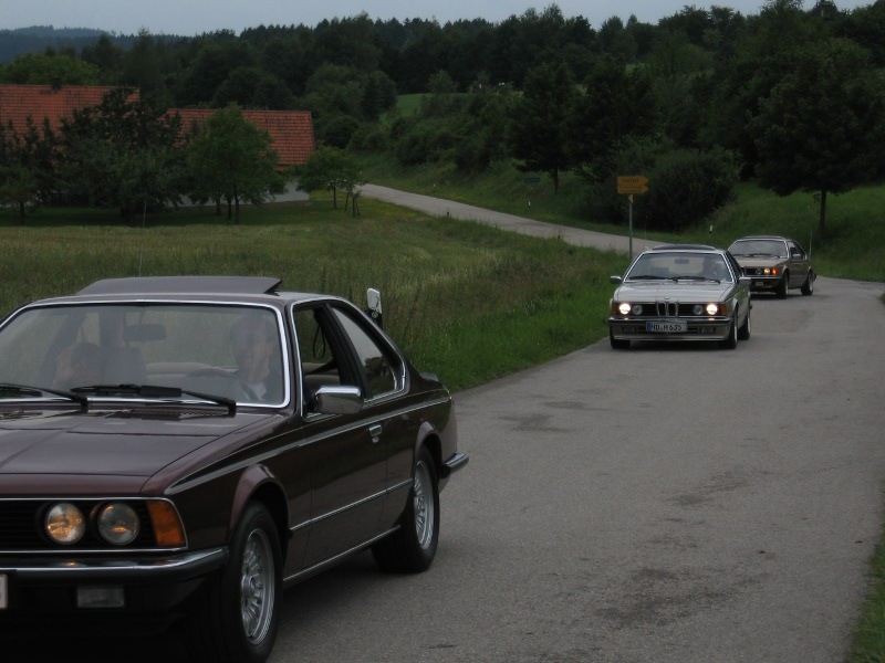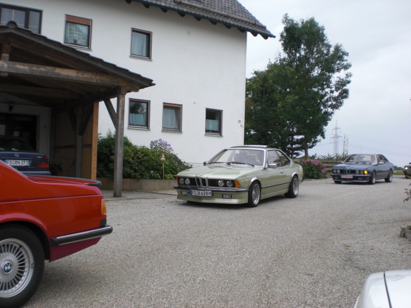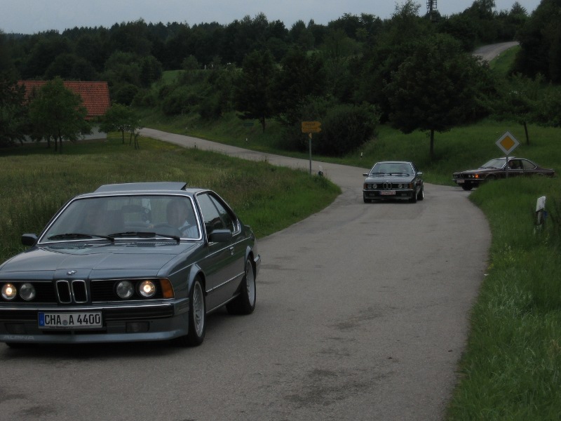 Bereits am Freitag trafen die ersten 6er Fahrer bei mir zuhause ein. Vor allem unsere österreichischen Freunde waren hier in der Überzahl. Steiermark, Hallein und Salzburger Land waren vertreten. Auch aus der näheren Umgebung waren einige da. Bei einem gemütlichem Grillabend, der bis gut nach Mitternacht dauerte ging der erste Tag zu Ende. Am nächsten Tag traf man sich dann ab 10 Uhr beim „Gasthaus Wittmann“ in Tegrnbach, wo es dann um 12 Uhr Weißwürst und Brezn gab. Bis 13 Uhr kamen dann doch 26 Fahrzeuge der E24 Reihe zusammen. Mit dabei auch 2 E30 Cabrios. Nach einer einstündigen Ausfahrt auf Nebenstraßen durch das schöne Hallertauer Hopfenland, machten wir Zwischenstopp beim Bauernhofkaffee Westermeier in Reichertshausen. Dort gab es hausgemachtes Schmalzgebäck und leckere Kuchen und Torten. Danach steuerten wir wie jedes Jahr den Biergarten Rockermeier in Unterpinhart an, wo wir den Tag gemütlich ausklingen ließen. Das Wetter war so ziemlich auf unserer Seite, nur am Samstag morgen gab es einen leichten Nieselregen.