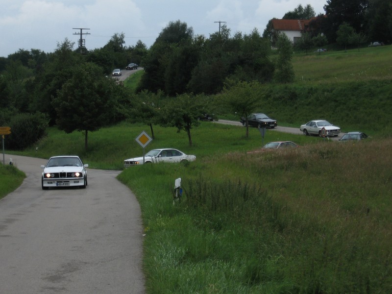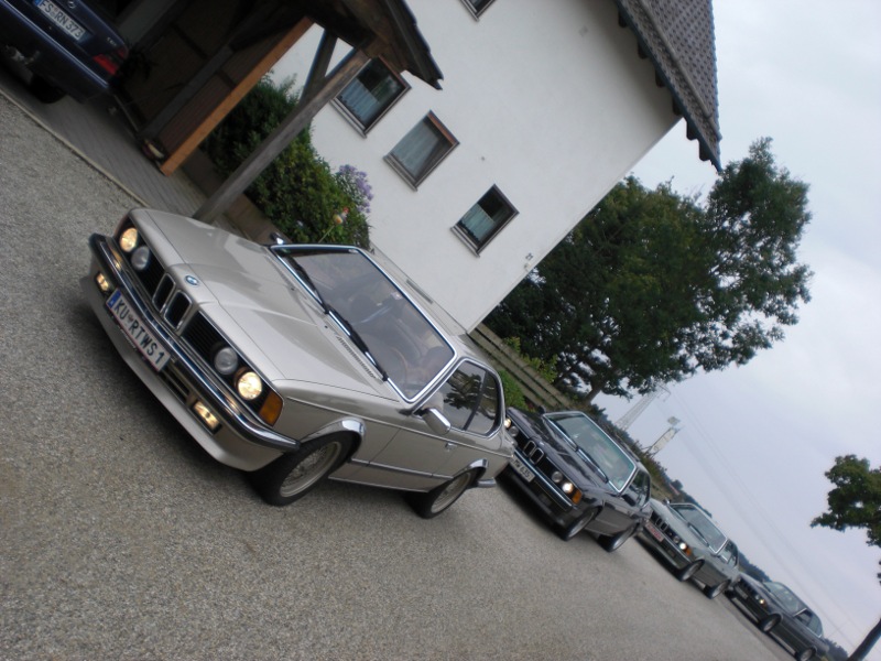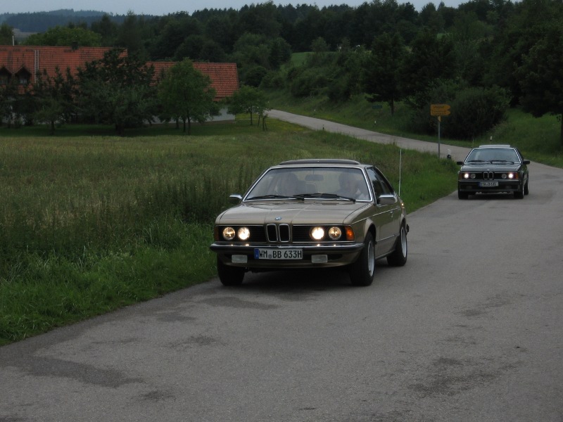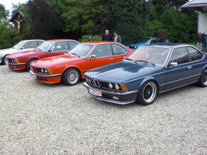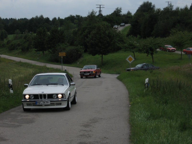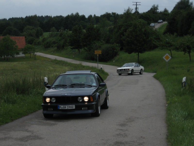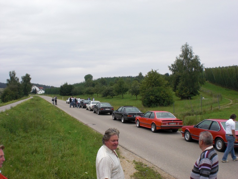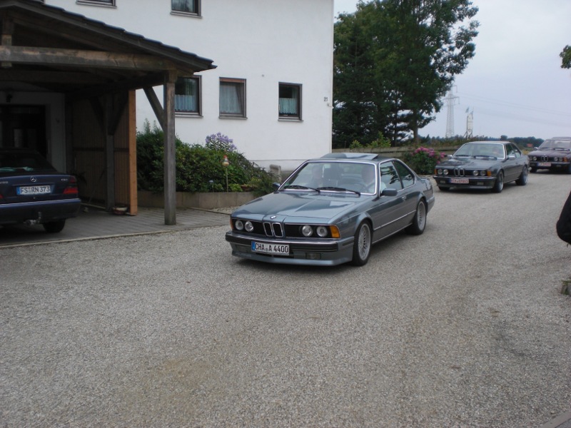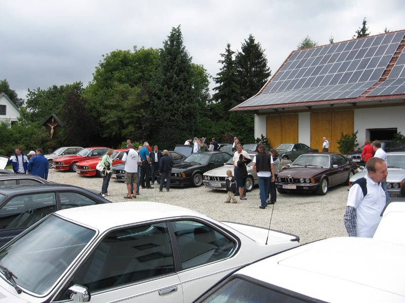 Bereits am Freitag trafen die ersten 6er Fahrer bei mir zuhause ein. Vor allem unsere österreichischen Freunde waren hier in der Überzahl. Steiermark, Hallein und Salzburger Land waren vertreten. Auch aus der näheren Umgebung waren einige da. Bei einem gemütlichem Grillabend, der bis gut nach Mitternacht dauerte ging der erste Tag zu Ende. Am nächsten Tag traf man sich dann ab 10 Uhr beim „Gasthaus Wittmann“ in Tegrnbach, wo es dann um 12 Uhr Weißwürst und Brezn gab. Bis 13 Uhr kamen dann doch 26 Fahrzeuge der E24 Reihe zusammen. Mit dabei auch 2 E30 Cabrios. Nach einer einstündigen Ausfahrt auf Nebenstraßen durch das schöne Hallertauer Hopfenland, machten wir Zwischenstopp beim Bauernhofkaffee Westermeier in Reichertshausen. Dort gab es hausgemachtes Schmalzgebäck und leckere Kuchen und Torten. Danach steuerten wir wie jedes Jahr den Biergarten Rockermeier in Unterpinhart an, wo wir den Tag gemütlich ausklingen ließen. Das Wetter war so ziemlich auf unserer Seite, nur am Samstag morgen gab es einen leichten Nieselregen.