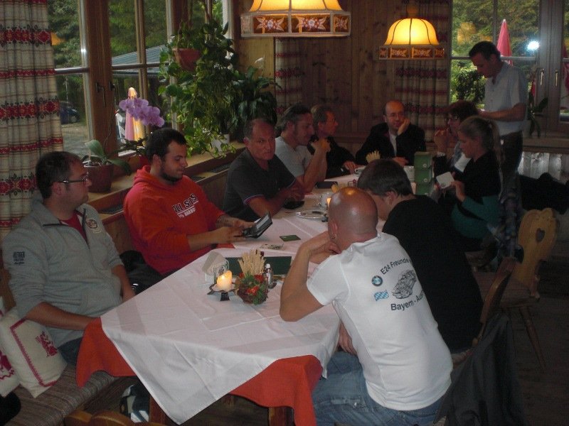Das letzte Treffen 2014 mit Dauerregen lockte nur 11 6ern ins Berchtesgadener Land. Treffpunkt war um 10 Uhr das Gasthaus Gumping, wo wir nach dem Mittagessen zur Ausfahrt aufbrachen. Wäre besser gewesen wir wären sitzengeblieben. Im Monsumregen gings über Bad Reichenhall nach Österreich zum Tanken. Danach durch 2 lange Tunnels (es wurde ordngsgemäß richtig Gas gegeben) weiter über Lofer, bis kapp vor St.Johann in Tirol über eine Mautstrecke rauf auf 1100m zur „Grießner Alm“ am „Wilden Kaiser“ auf Kaffee und Kuchen. Um 16 Uhr fuhren wir über Kössen, Marquartstein Richtung Autobahn, heimwärts.